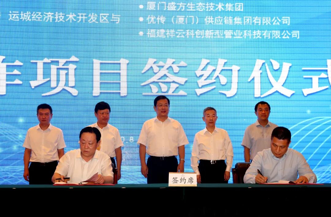 运城位于晋南,是中华文化发源地;运城区位优势明显,距西安200公里、河南三门峡50公里,周边可以辐射的市场人口达1亿。运城投资环境优良,运城政府大力发展和支持制造业。在运城市委市政府、运城经开区的支持下,该项目预计年内动工,2021年投产。项目公司产品将广泛运营于家具、汽车、建材、农业等领域。该项目系西北地区最大的植物纤维制造项目。盛方集团在重庆、四川、天津、湖北制造基地以外,新增大西北地区的制造基地。在仪式中,运城市经开区和优传集团、福建祥云科创分别签署了跨境电商产业园区项目、高端管业制造项目的框架协议,各方将进一步落实项目。